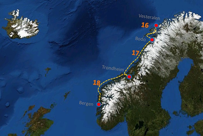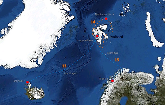 Qaanaaq region. The voyage is devided into six legs of 9-16
