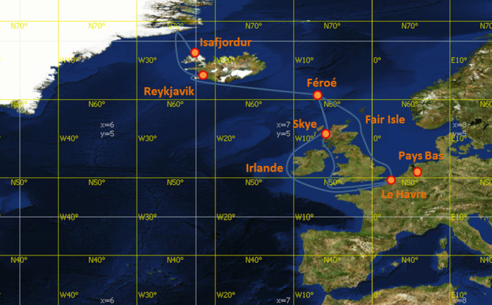 Faroe Islands, Le Havre, via Scotland, Irish Sea, English