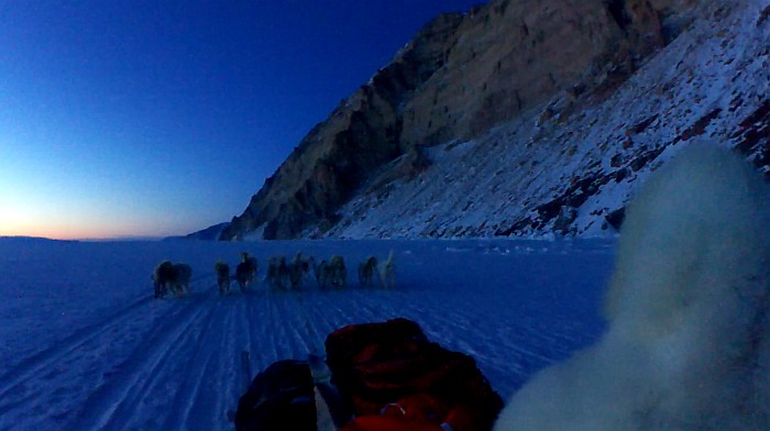 En route for Qaanaaq - twilight in January