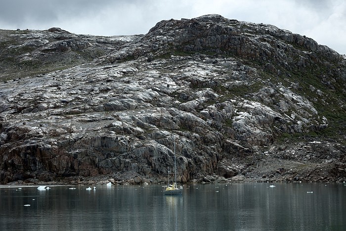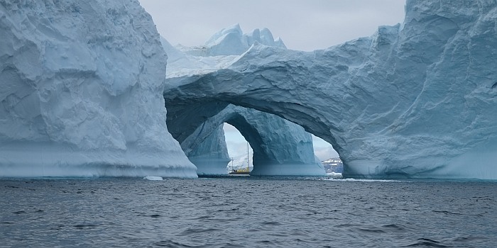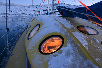 sur son voilier pris dans la glace au nord du Groenland,