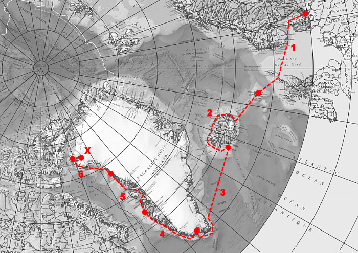 • Narsarssuaq - Sisimiut : 630 milles : équipage 7 : 13 jours