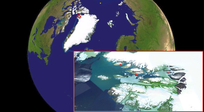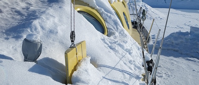 pris dans la glace au Nord-Ouest du Groenland durant l'hiver