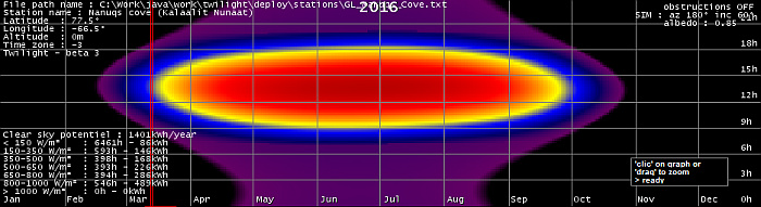 Qeqertat - axe horizontal = date; axe vertical = heure (application