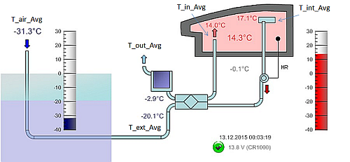 HD : degrés jours 20/12 = 11800 dK; T-cabine/-3 = 7200