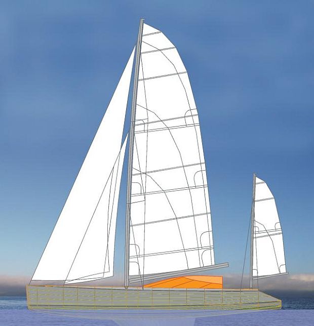 La propulsion sous voiles est assurée par un gréement autoporteur 9/10
