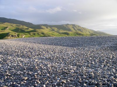 We are moored in an idyllic spot - Loch Tarbert, Isle of Jura - with nothing around us except sea and the heather-covered hills. Not another human being in sight. This evening, while supper was cooking, we set off in the Zodiac to explore one of Jura's strange natural phenomena - its raised beaches. These pebbly beaches, way above sea level, are a left-over from the last Ice Age and are criss-crossed with strange tracks. Behind the beach was a large freshwater lake, tempting but cold. Then back to Imram for a super meal of spaghetti, cabbbage salad and banane flambée, followed by a dram of whisky on deck under the stars.