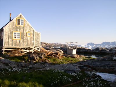 Hardly have we tied up to the rusty quayside rings than a French photographer greets us. He tells us that the last time that a sailing boat stopped here was 14 years ago. With his help we make the acquaintance of an Inuit who has just returned from hunting a narwhal. Proudly he shows us the amazing single spiral tusk. Not for the first time we regret our complete inability to speak the Inuit language. It feels that we have changed era: the absence of cars, the smell of fish and seal meat drying in the sun, the bark of a dog, and then complete silence.