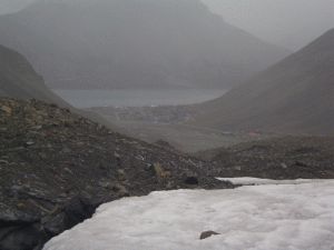 Vue de Longyearbyen depuis le glacier au fond