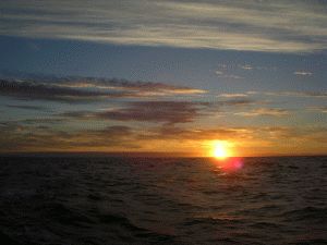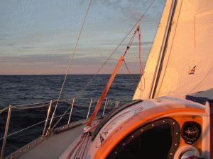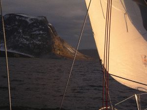 Depuis 36 heures, Imram fait cap au Sud. Nous nous trouvons quelque part à 60 milles nautiques à l'ouest de Björnöya, l'Ile aux Ours. Situation anticyclonique avec ondées orageuses. La dépression qui stationnait sur le Cap Nord s'est finalement décalée vers l'est et depuis 24 heures nous naviguons sur une confortable allure de travers. L'eau se réchauffe rapidement, de 1°C au Sitzberg à 9°C ici, et la température de l'air monte, 2-4°C dans l'archipel, 11°C maintenant! Les rayons du soleil chauffent la cabine et pour la première fois depuis des semaines il y fait une température argéable sans chauffage. La mer est bleue et une multitude d'oiseaux de mer tournent autour du bateau qui avance à bonne allure et fait chanter l'étrave d'ans l'écume.