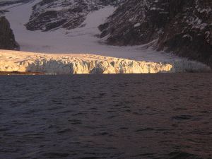 Nous décidons de visiter le fond du fjord dont l'accès avait été impossible il y a encore 3 semaines en raison du pack et du brouillard. D'après les cartes nous y serons entourés d'un impressionnant front de glacier.Avec stupeur nous constatons que le recul des glaciers à fait apparaître de larges bandes de roches et de moraines divisant le glacier en de nombreuses parties... La diminution de la masse glaciaire doit atteindre quelques 50% depuis un demi siècle!