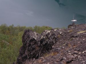 Temps de déraper l'ancre, cap sur une nouvelle destination, Isfjord à 50 milles d'ici. Encore quelques heures de moteur en vue; les vents sonttrès faibles et variables. Petite averse bienvenue pour doucher randonneurs et