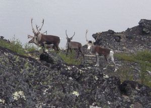 Deux cascades annoncent le début des montagnes qui surplombent la vallée. Nous pouvons difficilement résister à l'appel des sommets et cecid'autant plus difficilement que les myrtilles sont encore plus gouteuses en altitude. Temps d'une promenade, rencontre de nombreux rennes qui attendent la prochaine migration vers l'intérieur des terres en se reposant sur l'épaisse végétation au bord des nombreux petits lacs et en broutant herbes et les airelles...