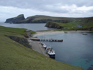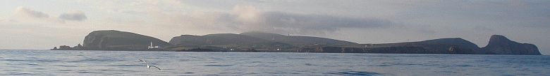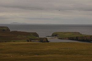 les hautes falaises des Shetland au nord et les courbes arrondies